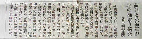 本来なら、新聞テレビが大きく報じておくべき事件。二日たっても小さく扱ったままだ。というわけで、今後の展開によっては引用の必要もあるのでブログに再掲載しておくことにする。 海自と英海軍 北の瀬取りを摘発 平成31(2019)年4月7日 読売朝刊 海自と英海…